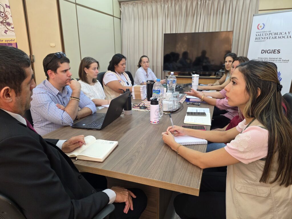 Participaron de la reunión representantes de la Dirección General de Información Estratégica en Salud (DIGIES), de la XVIII Región Sanitaria – Capital y de organización aliada. Por la DIGIES, estuvieron presentes Edgar Tullo Gómez, director general, y María José Lerea. Por la XVIII Región Sanitaria, participaron Denise Marlene Benegas Plabst, jefa de Programas; Helena María Páez Caballero, coordinadora de la RIISS Regional; Lidia Fernández González, jefa de Salud Sexual y Reproductiva; Mariela Raquel Penayo Insfrán, jefa del Departamento de Obstetricia Regional; y Myrian Catherine Burgos Kieninger, jefa de Estadística Regional. Asimismo, acompañaron el encuentro Alberto Benítez Ocampos, coordinador de Datos de la Fundación Rassmuss, y María del Pilar Serna Restrepo, coordinadora del Proyecto de Extensión Comunitaria de dicha Fundación.